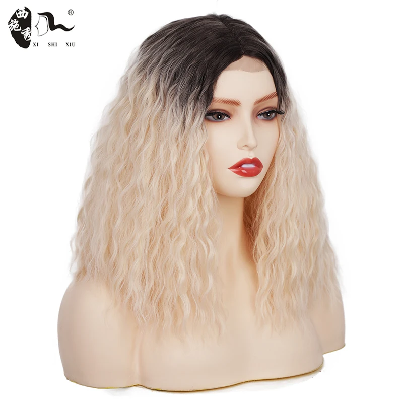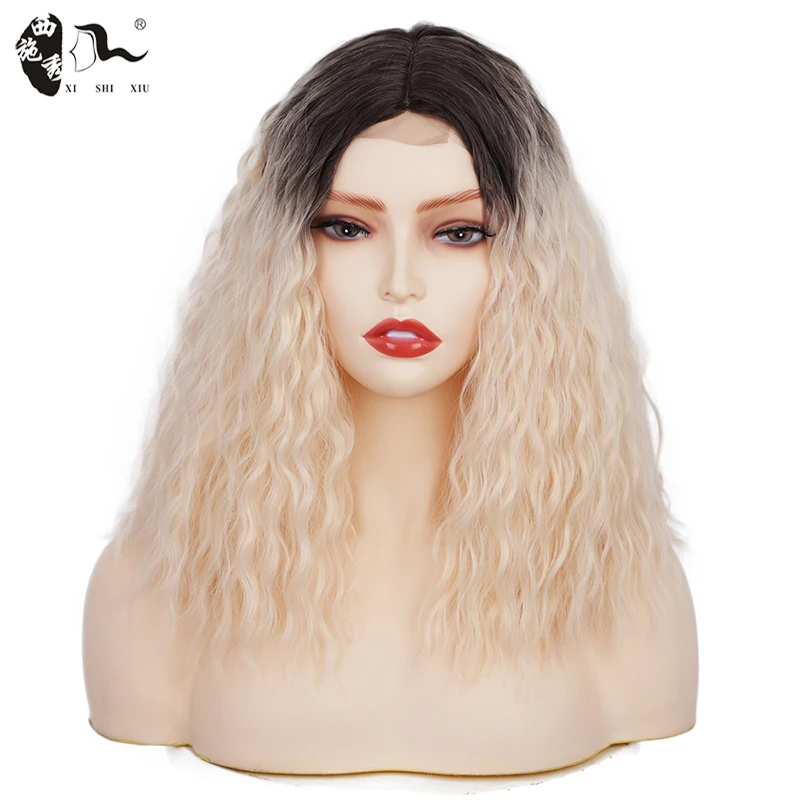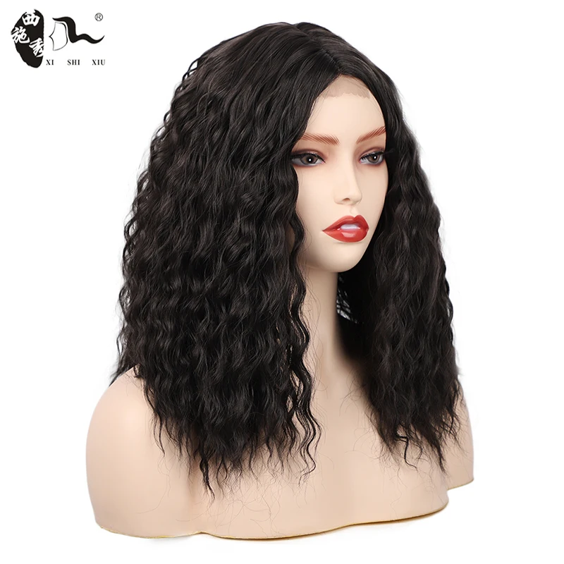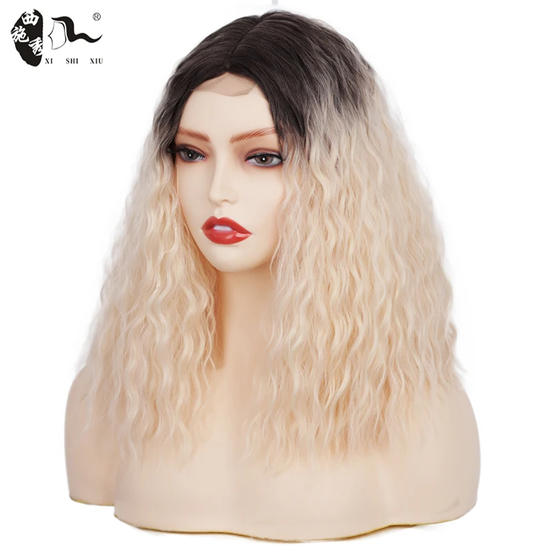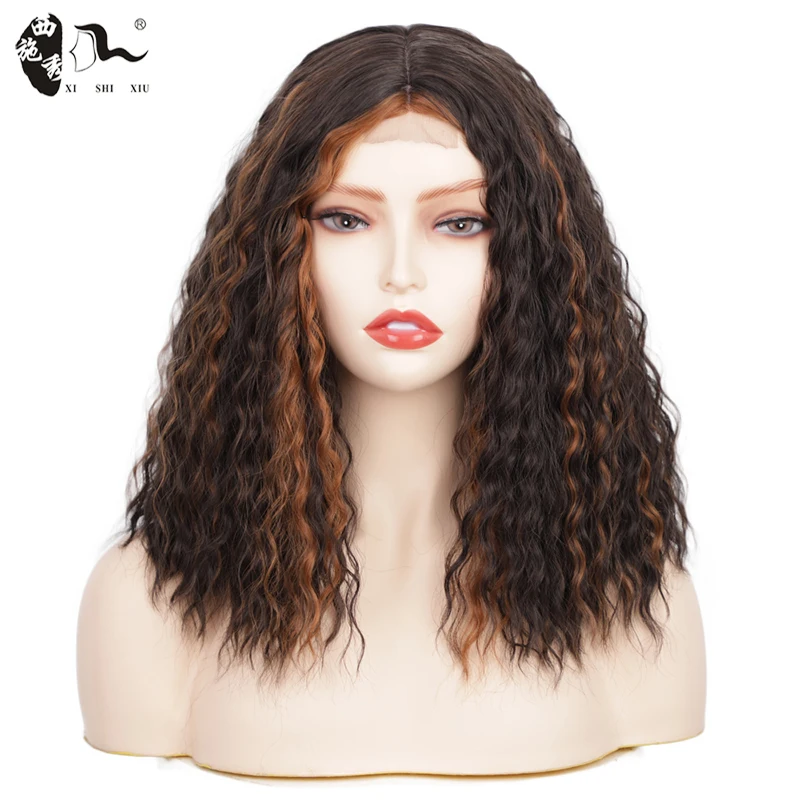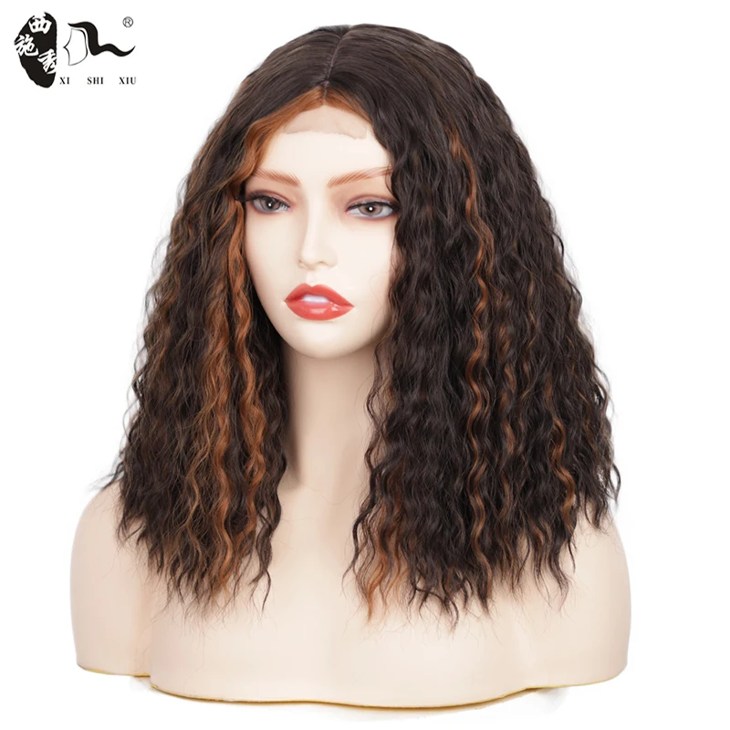 14inch Bob Synthetic Lace Front Wig Middle Part Bob Wave for Black Women Heat Resistant Fiber Hair natural Lace wig