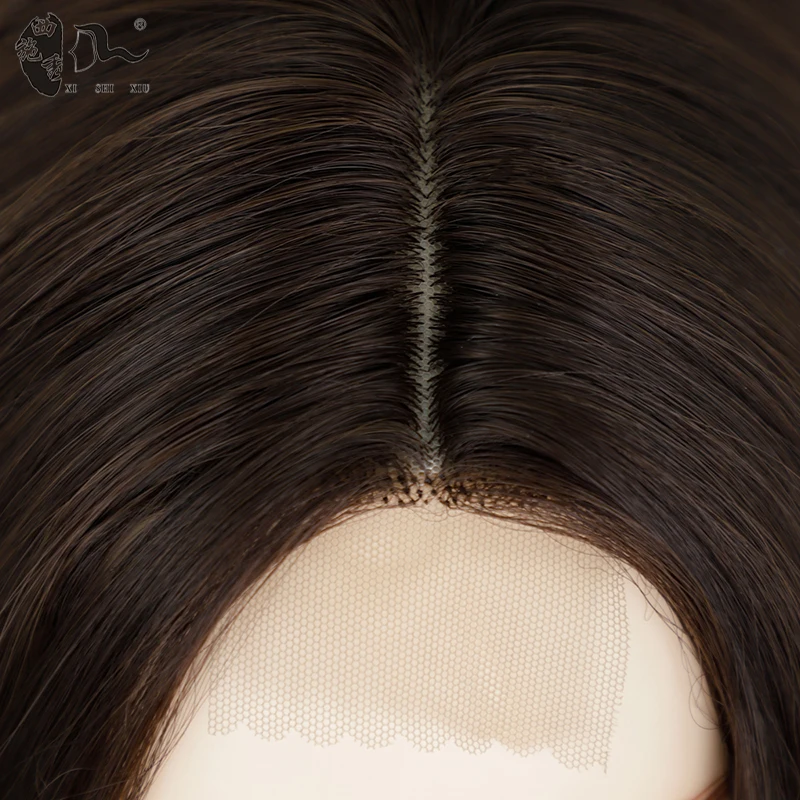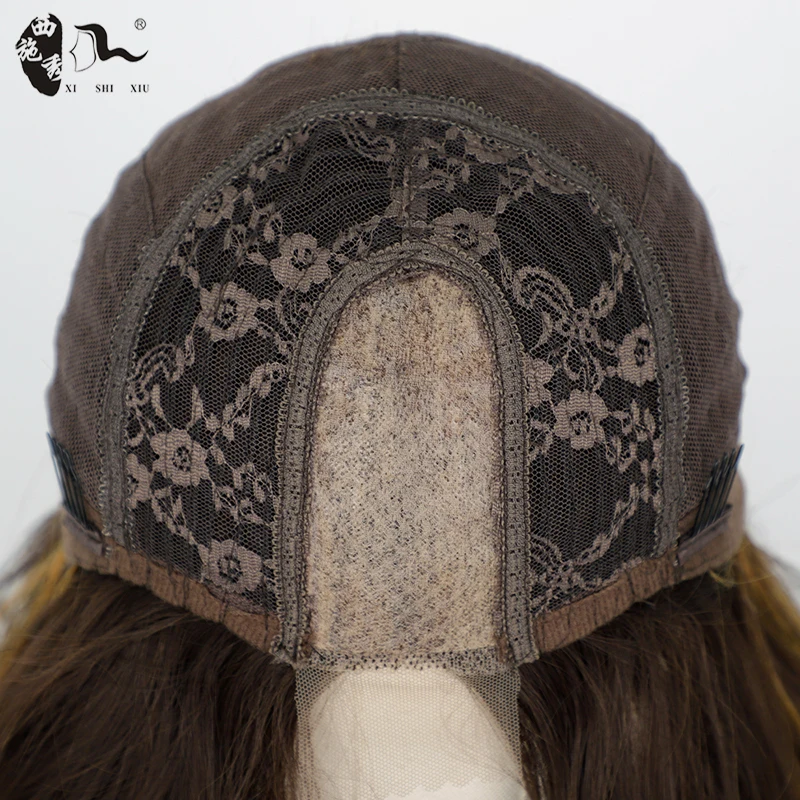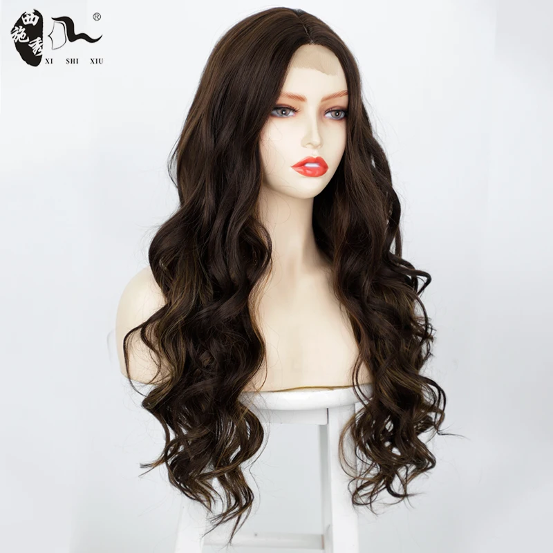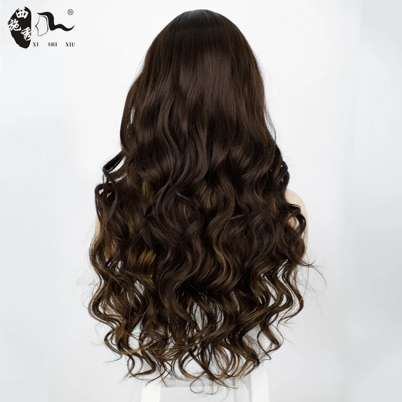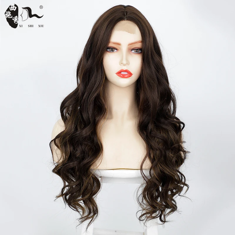 26inch Synthetic Lace Wig Ombre Brown Natural Curly Wave Hair Middle Part Lace Wig For Black Women Daily