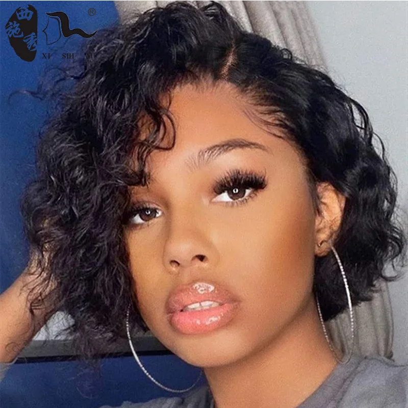 Brazilian Lace Synthetic Protein Filament Hair Wigs Short Bob Curly Hair Wig 4*4 T-Part Lace Closure Wig For Black Women