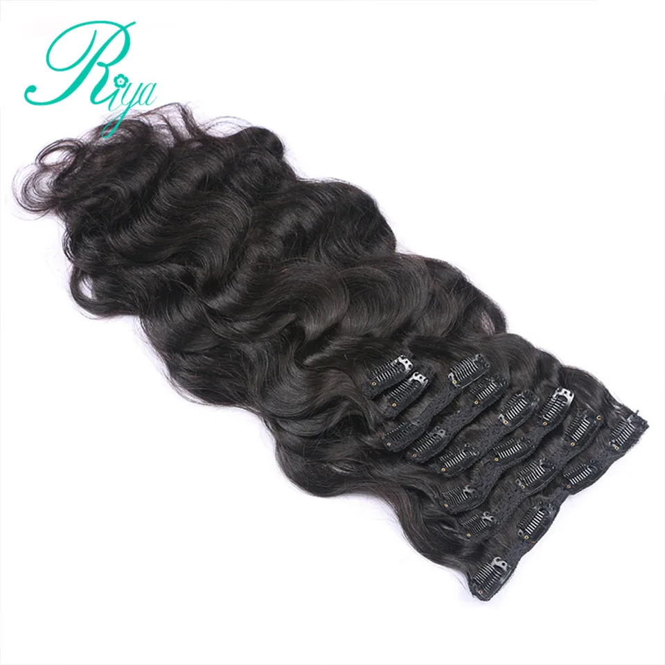 Human Hair For Black Women Extensions Full Head Body Wave Clip Ins Natural Black Color 8 Pieces And 120g/Set Brazilian Hair