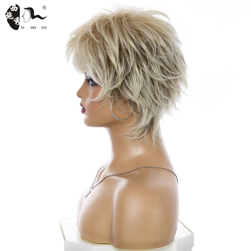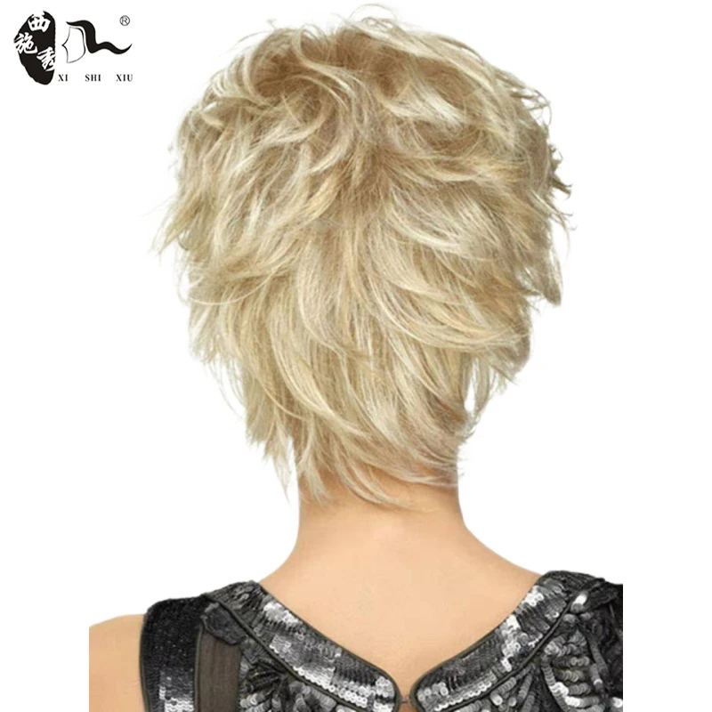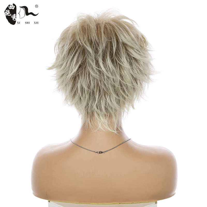 Short Straight Synthetic Hair Mix Brown Blonde Pixie Cut Ombre Women’s Wig Shaggy Layered Natural Female Hair