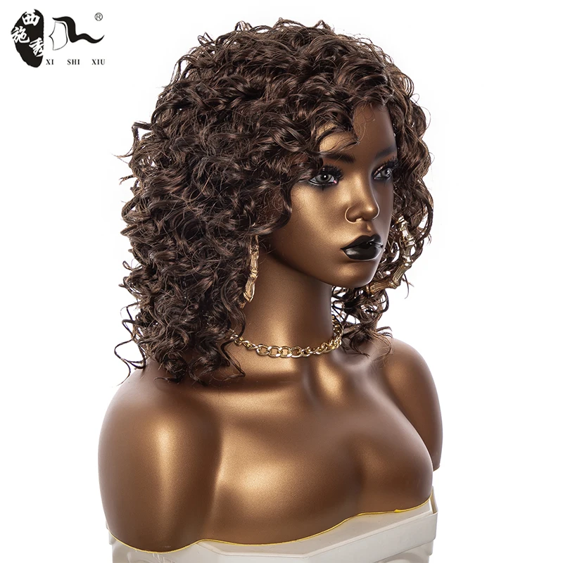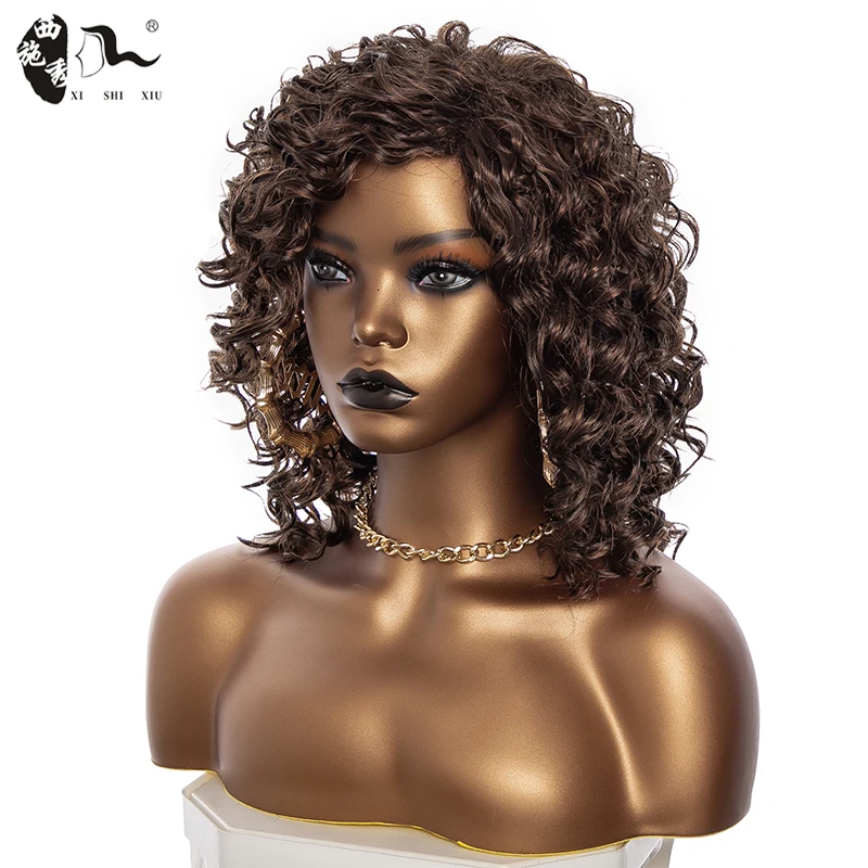 Highlight Afro Human Hair Wig Short Kinky Curly Wig For African American