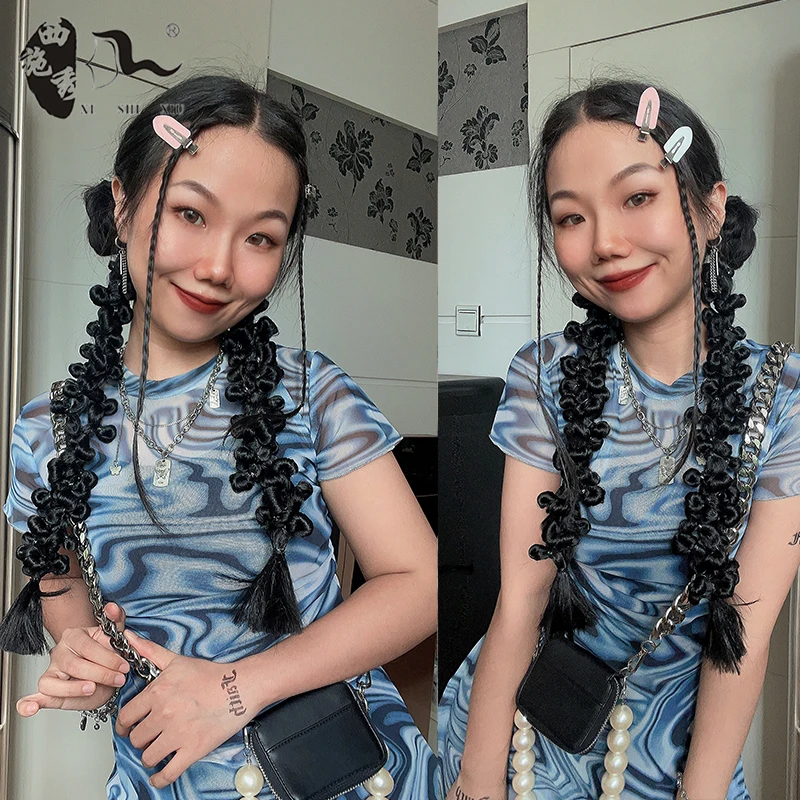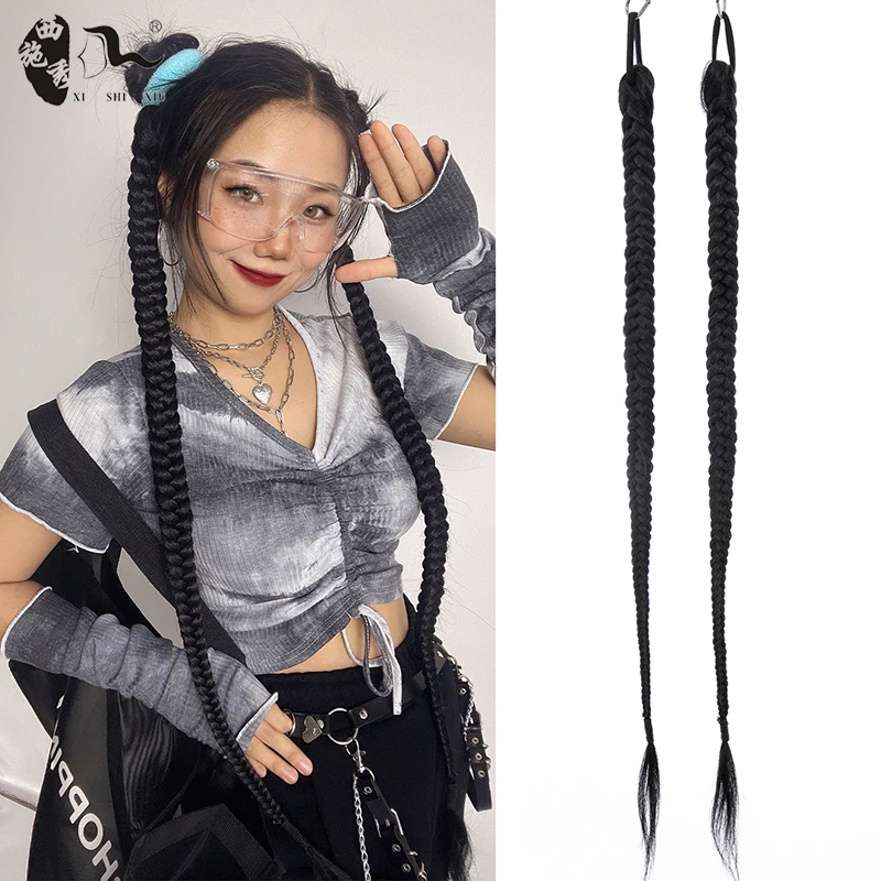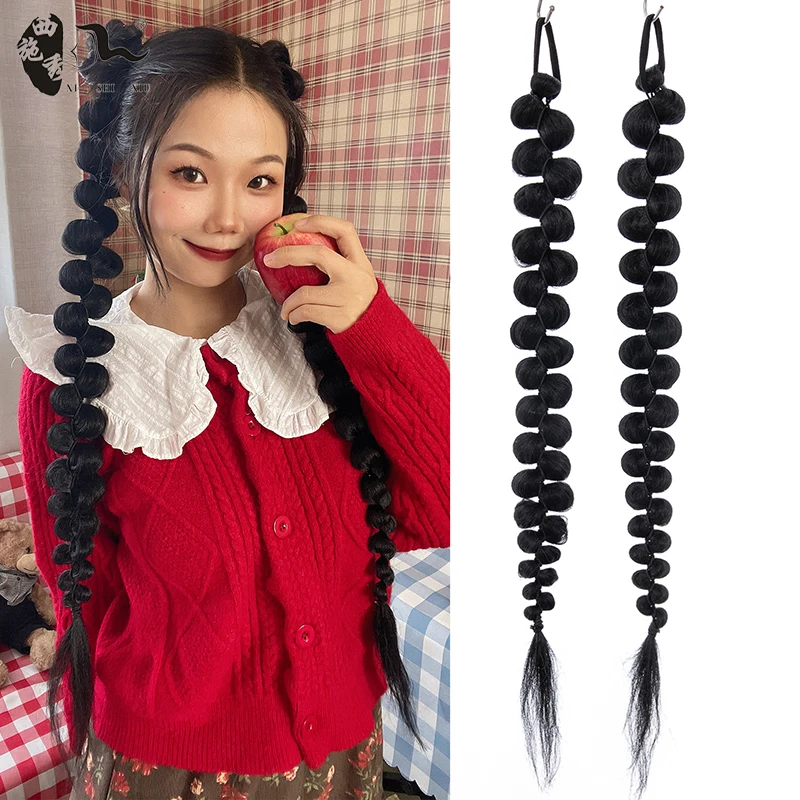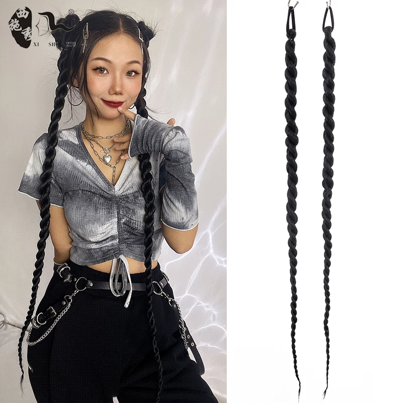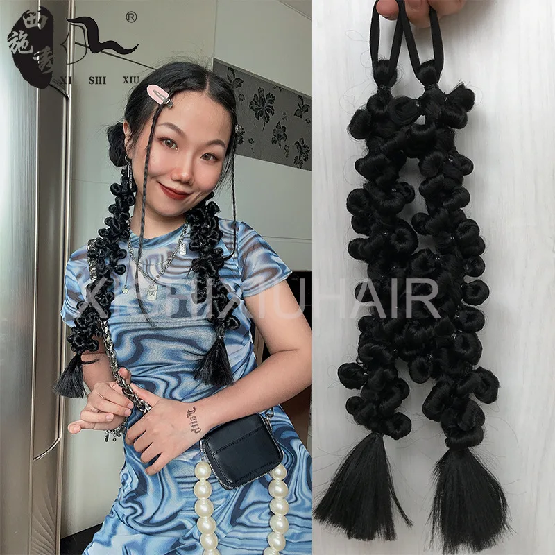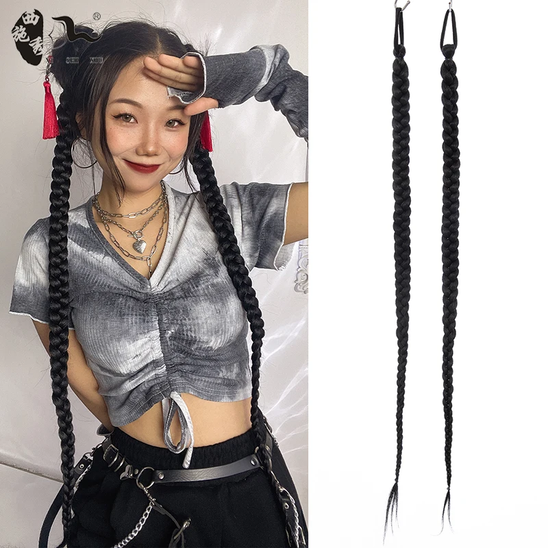 60cm-100m Braided Bangs Bride Oblique Fringe Bangs Synthetic Ponytail Hair Extensions Braided Ponytail Black Hairpieces