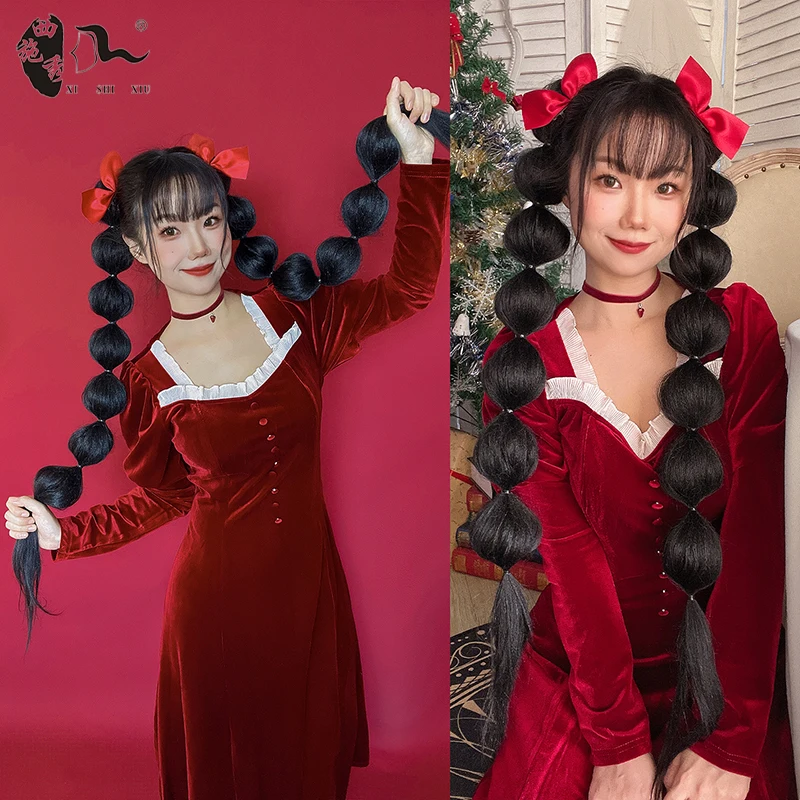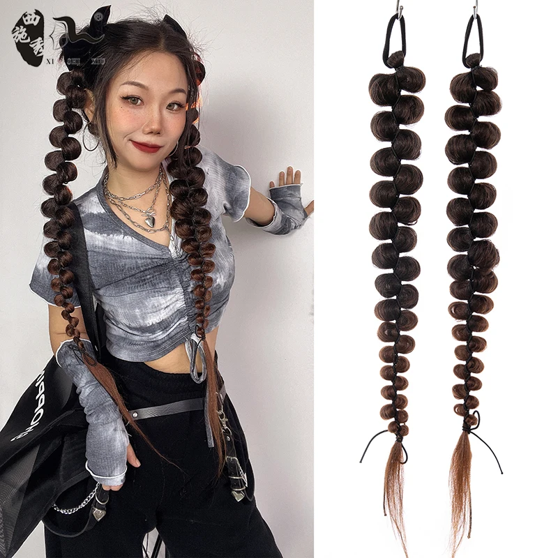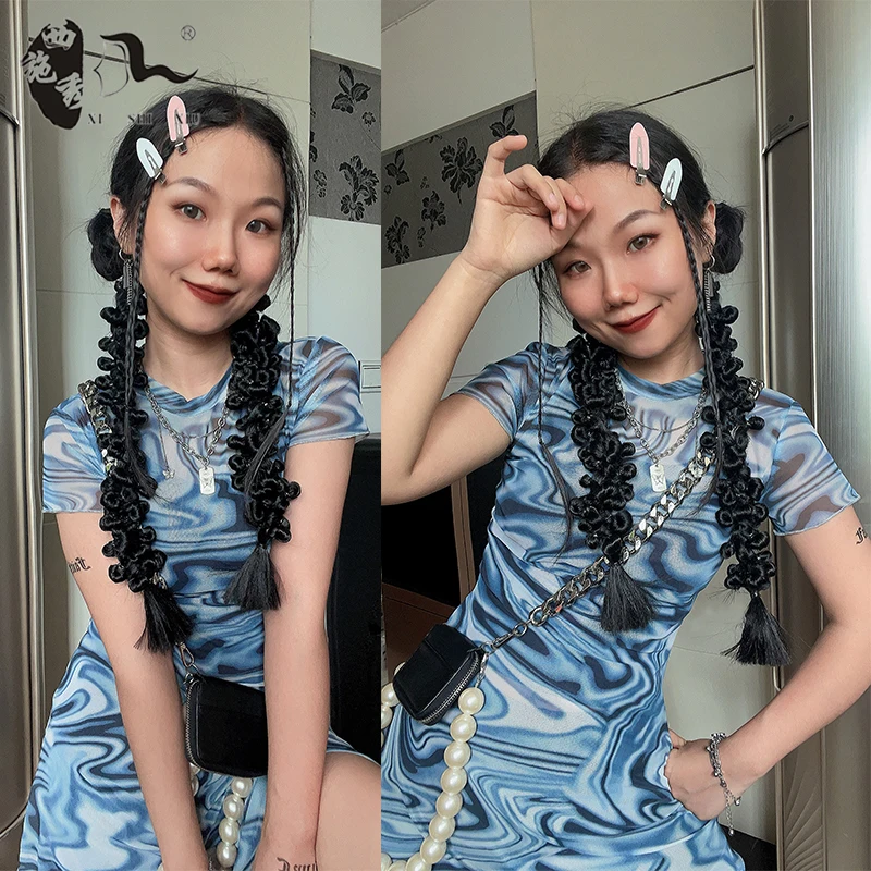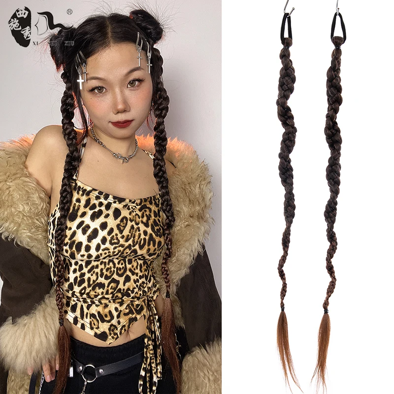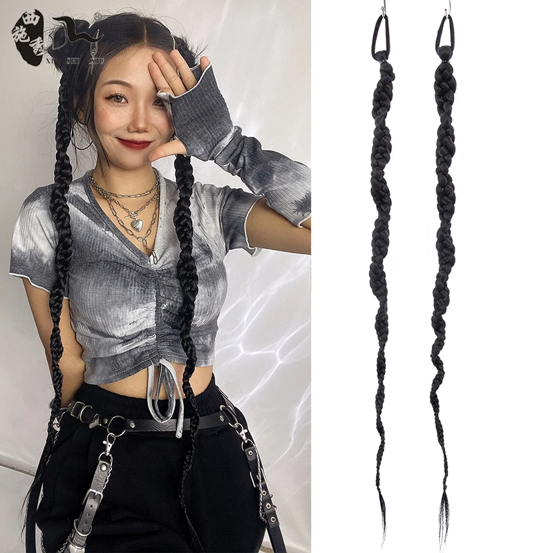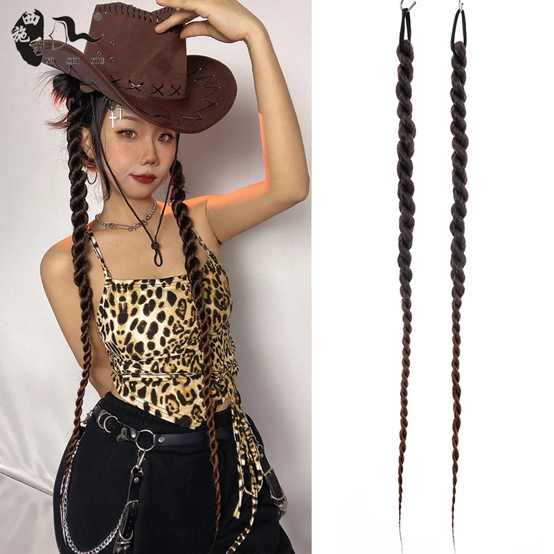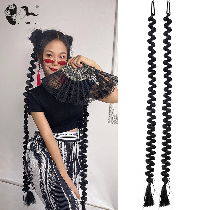 60cm-100m Braided Bangs Bride Oblique Fringe Bangs Synthetic Ponytail Hair Extensions Braided Ponytail Black Hairpieces