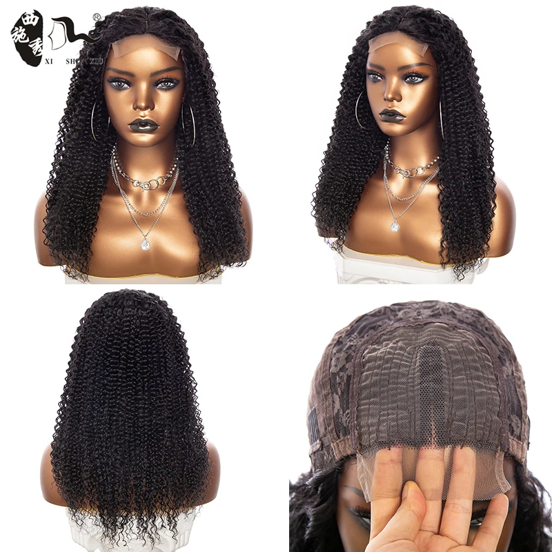 Protein Filamen Synthetic Hair Kinky Curly Lace Closure Wig 4×4 Middle Part African Curl Wigs For Black Women Curly Wig