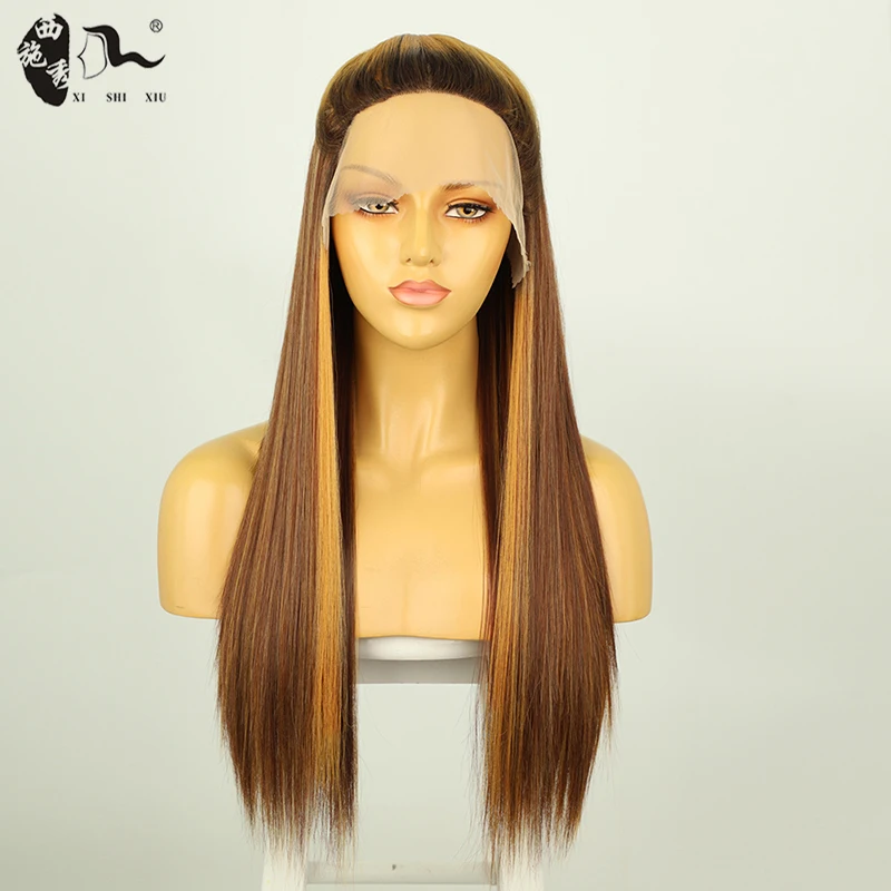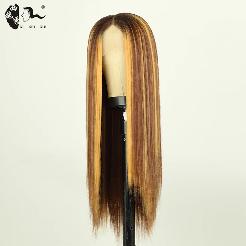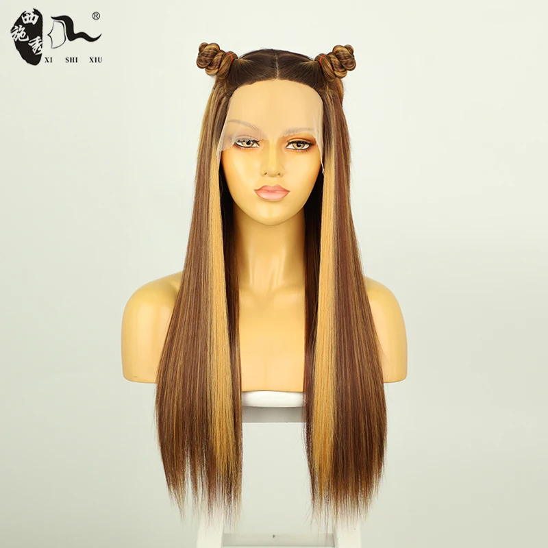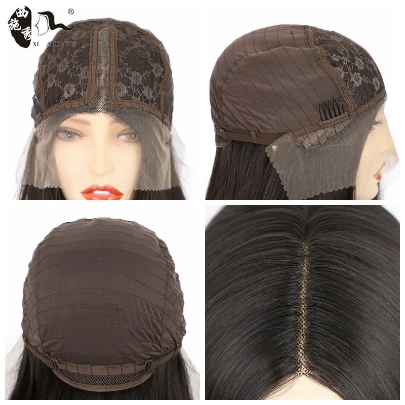 Synthetic Lace Front Wigs Brown Black Color Natural Straight Long Middle Part Hair Cosplay Wig For Black Women XISHIXIU