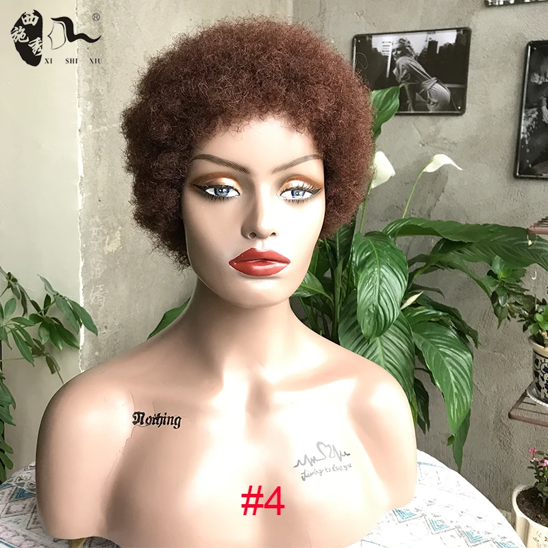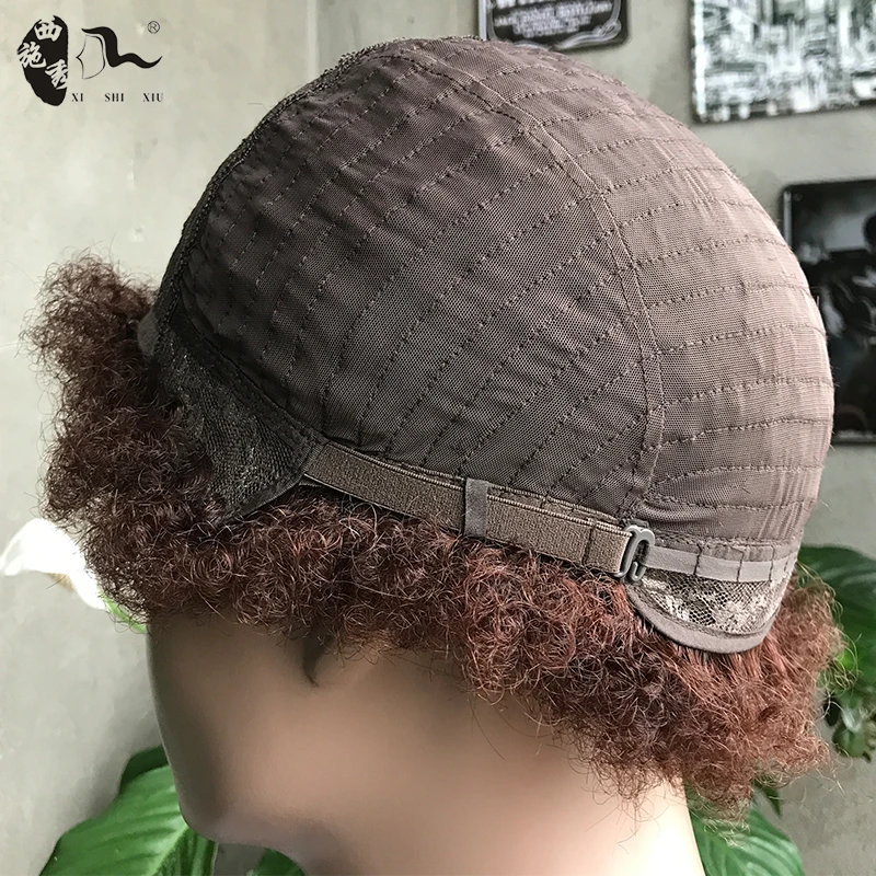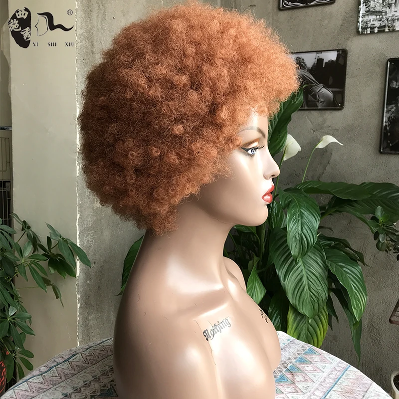 Short Afro Kinky Curly Wave Synthetic Protein Filament Hair Wigs Off Black Blonde Color Wig For Black Women WithBang/FringeWigs